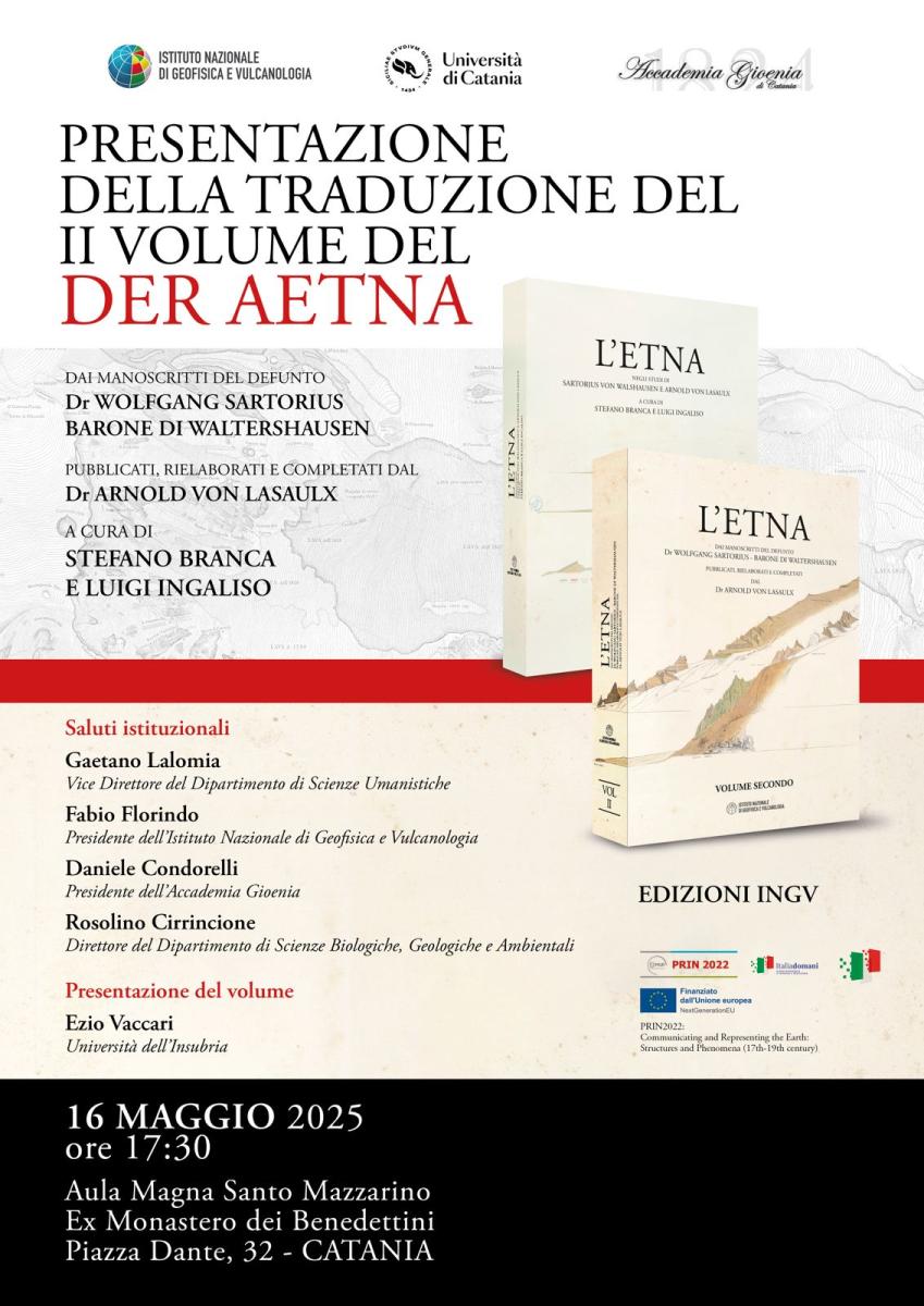 Giorno 16 maggio 2025 alle ore 17:30, si terrà presso l'Aula Magna Santo Mazzarino dell'Ex Monastero dei Benedettini (Piazza Dante, 32 - Catania) la presentazione della traduzione del II volume del DER AETNA.