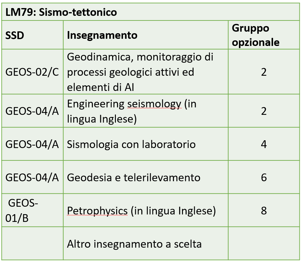 Il piano di studio "Sismo-tettonico" forma laureati magistrali con competenze nella comprensione dei processi tettonici e geodinamici che controllano la deformazione crostale e la sismicità. Il percorso fornisce strumenti per l’interpretazione delle strutture tettoniche e dei sistemi deformativi, integrando dati geofisici e osservazioni geologiche. Il piano approfondisce lo studio dei processi sismogenetici e delle proprietà fisiche delle rocce, utilizzando tecniche di monitoraggio sismologico e geodetico. Particolare attenzione è rivolta alla valutazione degli effetti della sismicità sul territorio e sulle infrastrutture. Nel complesso, il piano fornisce competenze per l’analisi integrata dei processi sismici e deformativi e per il supporto alla valutazione della pericolosità sismica.