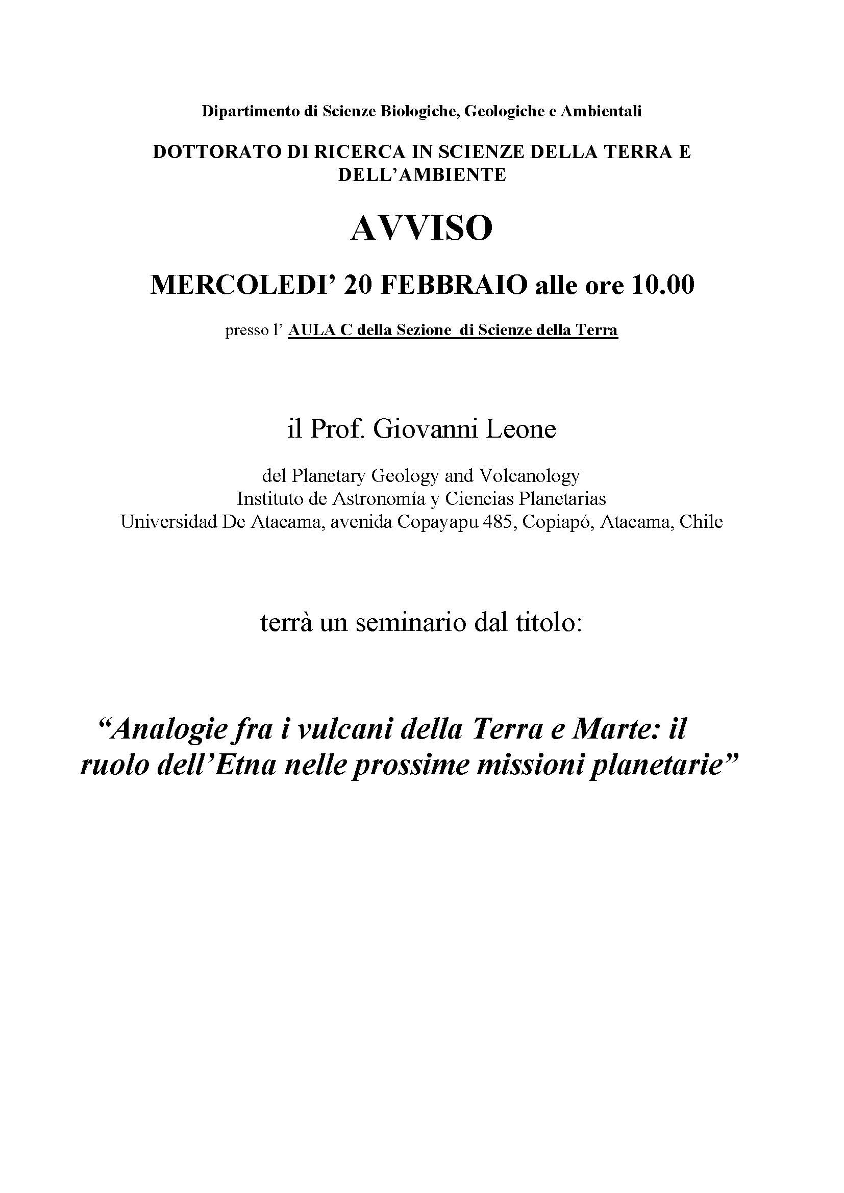 Mercoledì 20 febbraio alle ore 10:00 presso l'aula C della Sezione di Scienze della Terra (Corso Italia 57, Catania) si terrà il seminario dal titolo "Analogie fra i vulcani della Terra e Marte: il ruolo dell’Etna nelle prossime missioni planetarie”.