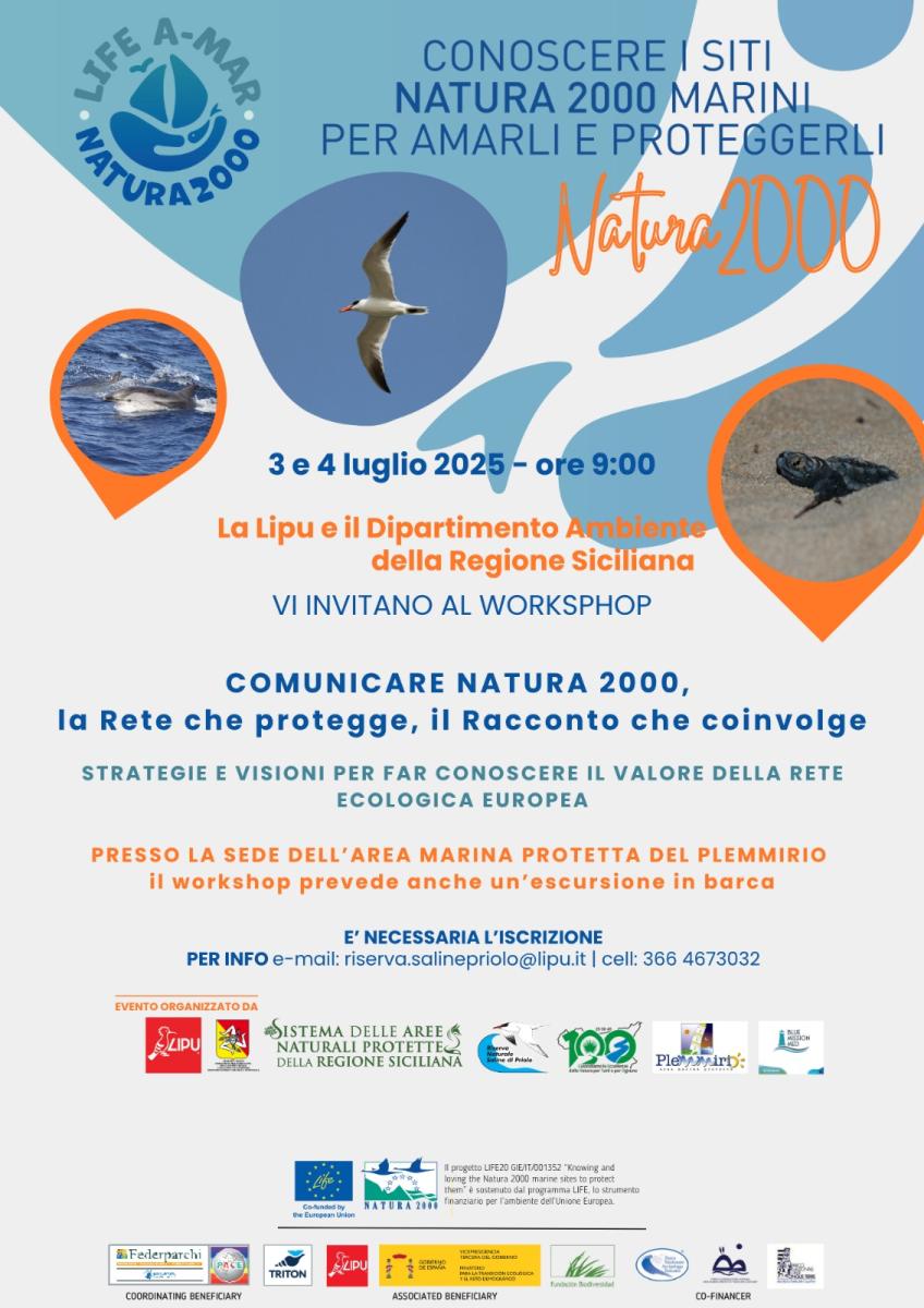 Si informa tutti gli studenti che il 03 e 04.07.2025, la LIPU e il Sistema delle Aree Naturali Protette della Regione Siciliana propongono un workshop, presso l'Area marina protetta del Plemmirio, sulla Comunicazione dei Siti Natura 2000 con specifico riferimento a quelli marini. Sono previste escursioni mirate, di cui una si effettuerà in barca.