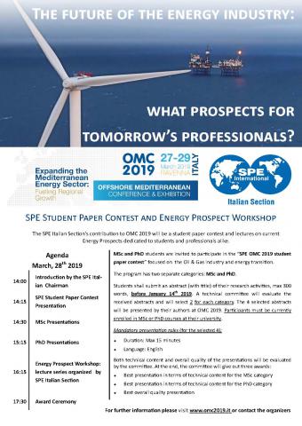 Come nelle edizioni precedenti OMC conferma il suo impegno verso le nuove generazioni presentando un ricco programma di incontri con le aziende e lectures rivolte agli studenti universitari. Nell'edizione 2019 dello Youth Programme sarà aperto un Contest organizzato in collaborazione con la SPE Italia per MSc e PhD.