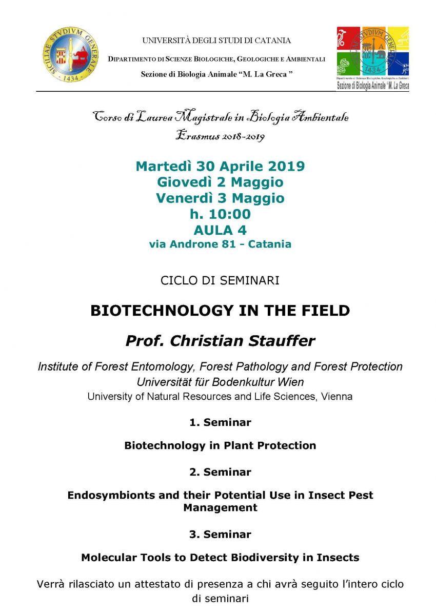 Ciclo SeminariI "BIOTECHNOLOGY IN THE FIELD" (Prof. Christian Stauffer)