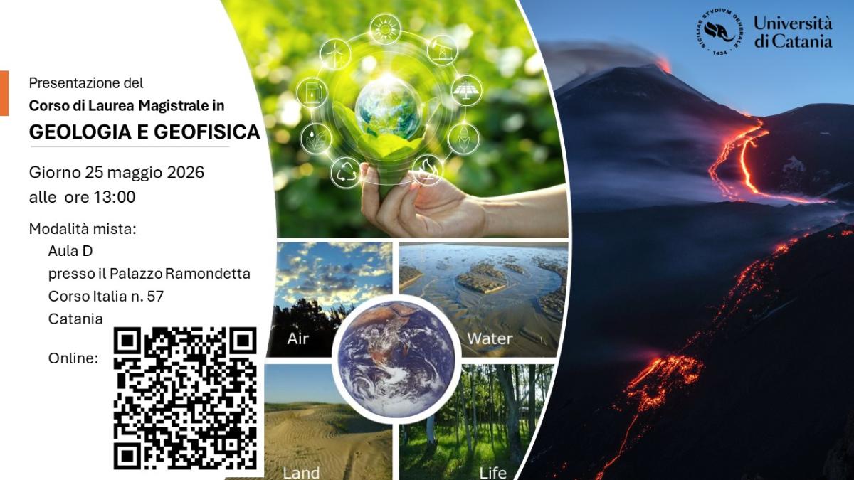 Si comunica a tutti gli interessati che il giorno 25 maggio 2026 si terrà l'incontro di presentazione del Corso di Laurea Magistrale in Geologia e Geofisica. L'evento è volto a illustrare l'offerta formativa, le opportunità di carriera e i dettagli del percorso di studi.