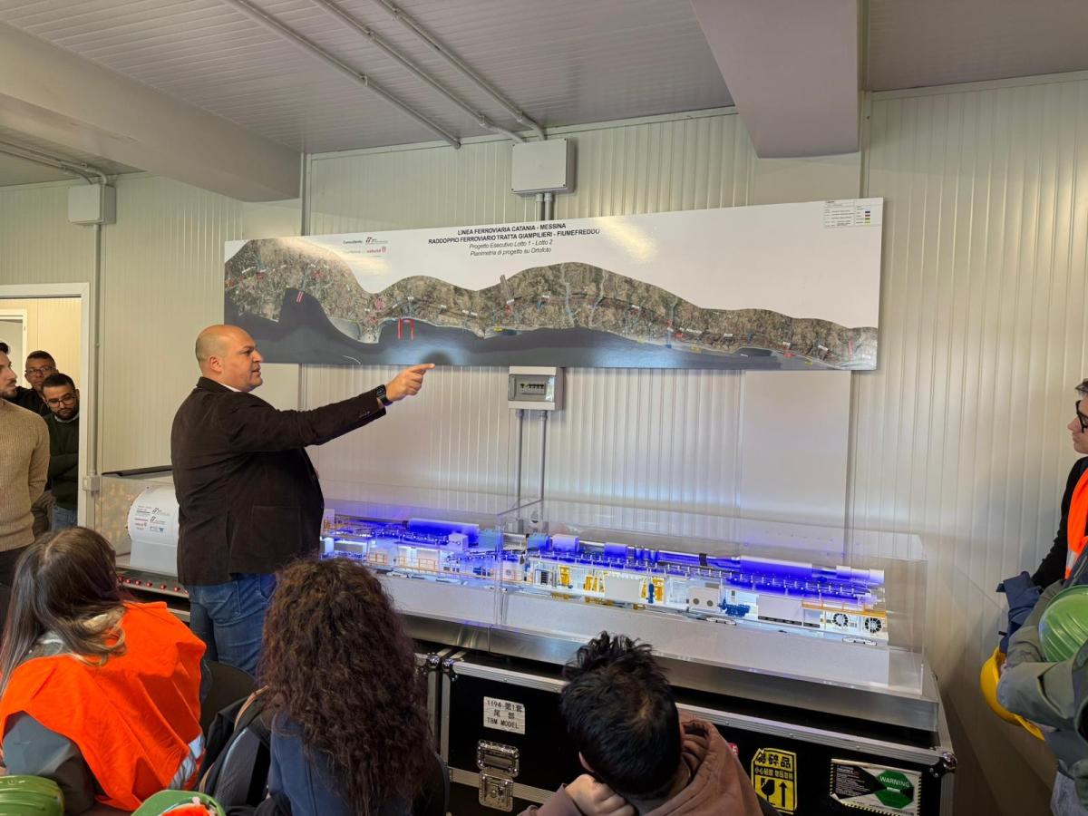 Visita guidata, con gli studenti del corso "Studio degli ammassi rocciosi e meccanica delle rocce", all'interno del cantiere di Italferr dove sono in esecuzione gli scavi delle gallerie del raddoppio ferroviario Giampilieri–Fiumefreddo, lungo la tratta Catania–Messina. Dopo un briefing iniziale sul progetto, gli studenti hanno visitato una galleria scavata con TBM, osservando il complesso funzionamento della fresa, e uno scavo eseguito con metodi tradizionale, raggiungendo il fronte di avanzamento. Un’esperienza concreta e formativa, che ha permesso agli studenti del corso di osservare da vicino la realtà dei cantieri di grandi opere infrastrutturali.